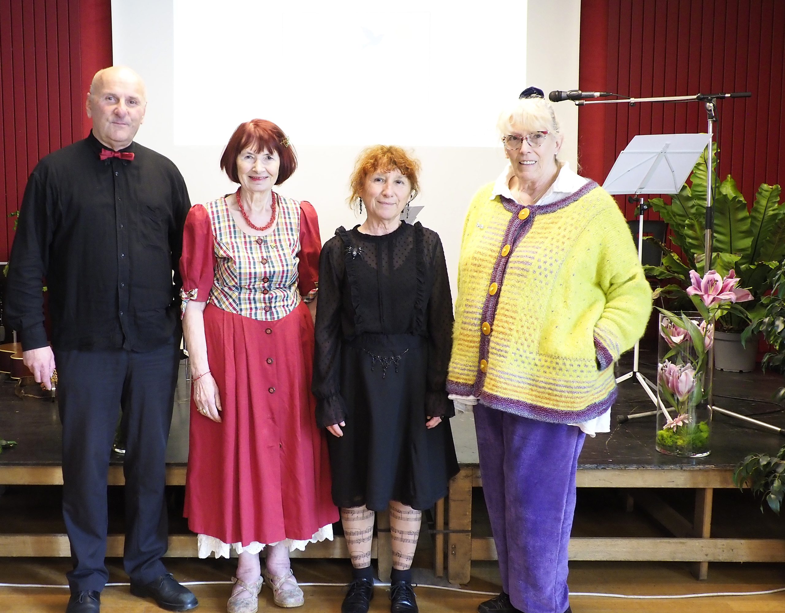 Le public, qui a reçu des cartes postales commémoratives de l’événement, a pris part au spectacle en chantant d’anciennes chansons sur le thème de la liberté. Certaines personnes présentes ont gagné par tirage au sort des exemplaires des publications des « Gens de Plume » .