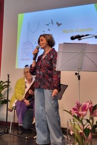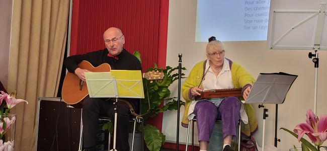 Le récital annuel de poésies de la section « Gens de Plume » de l’AAAHV s’est tenu le 28 mars dernier au Château du Chamois à Vandoeuvre. Ceux qui ont affronté le froid et la pluie de cette journée printanière pour assister à l’événement ont pu constater quelques changements par rapport aux éditions antérieures. Cette année, les poètes ont bénéficié des conseils de Mme Nadine Rémy, coach en diction et gestuelle ainsi que musicienne. Une autre nouveauté a concerné l’accompagnement musical, qui a été enrichi par la présence d’un psaltérion, joué par Mme Dominique Pouille, présidente de l’AAAHV, aux côtés de M. Pierre Seruya, guitariste.